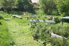 The south garden activity and meeting area, this space lies between the steading building and the camping field and allows for a wide range of activities to be supported, foraging, wild cooking and field crafts.